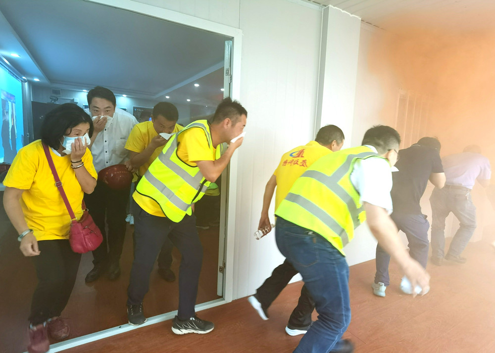 在随后的室内疏散逃生和灭火器灭火演练中,教官组织参会人员模拟火灾现场进行了实地疏散演练。大家通过亲身实践,掌握了消防安全知识,增强了火灾情况应急处置能力。