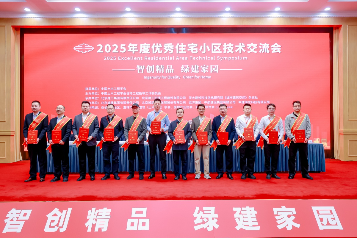 扬建网讯  2025年12月27日,中国土木工程学会住宅工作指导委员会在北京召开了2025年度优秀住宅小区技术交流会,会上举行了2025年度中国土木工程詹天佑奖优秀住宅小区金奖颁奖仪式,由扬建集团北方公司承建的北京天誉项目获得此项殊荣,集团公司副总经理、总工程师许世明登台领奖。这是集团在北京区域市场荣获的首个“詹天佑奖优秀住宅小区金奖”,大幅提升了集团在京品牌影响力。